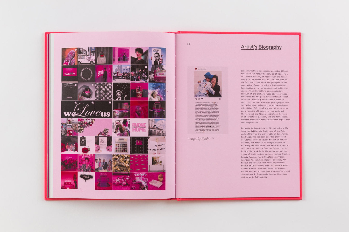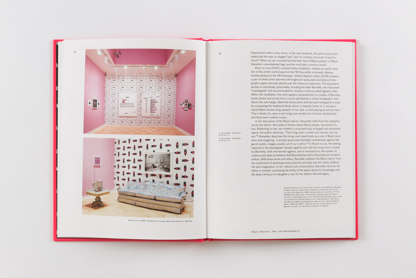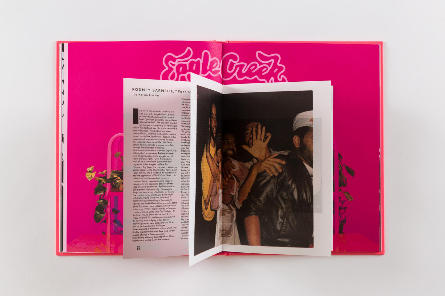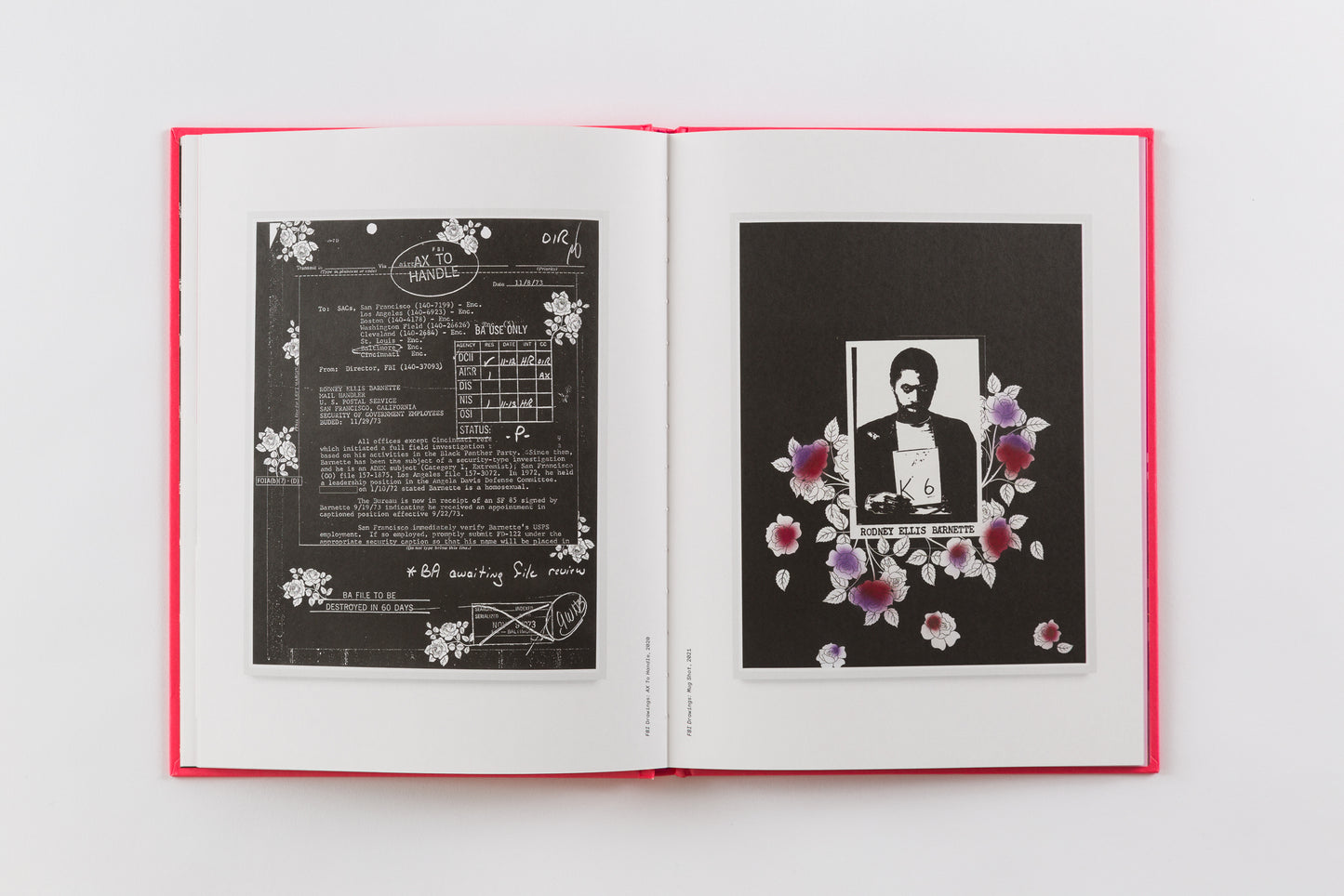 This catalog accompanies a two-venue exhibition co-organized by the Benton Museum of Art at Pomona College and the Pitzer College Art Galleries in Claremont, California. The embossed, hardcover catalog features new installation photographs of Barnette’s FBI Drawings at the Benton Museum and the living room style installation at the Pitzer College Art Galleries. The book includes essays by exhibition curators Rebecca McGrew and Ciara Ennis, the curator Rujeko Hockley, and the artist. The catalog also features a tribute to the artist’s project The New Eagle Creek Saloon, an installation that reimagines her father’s bar in San Francisco, the first Black-owned gay bar in the city.